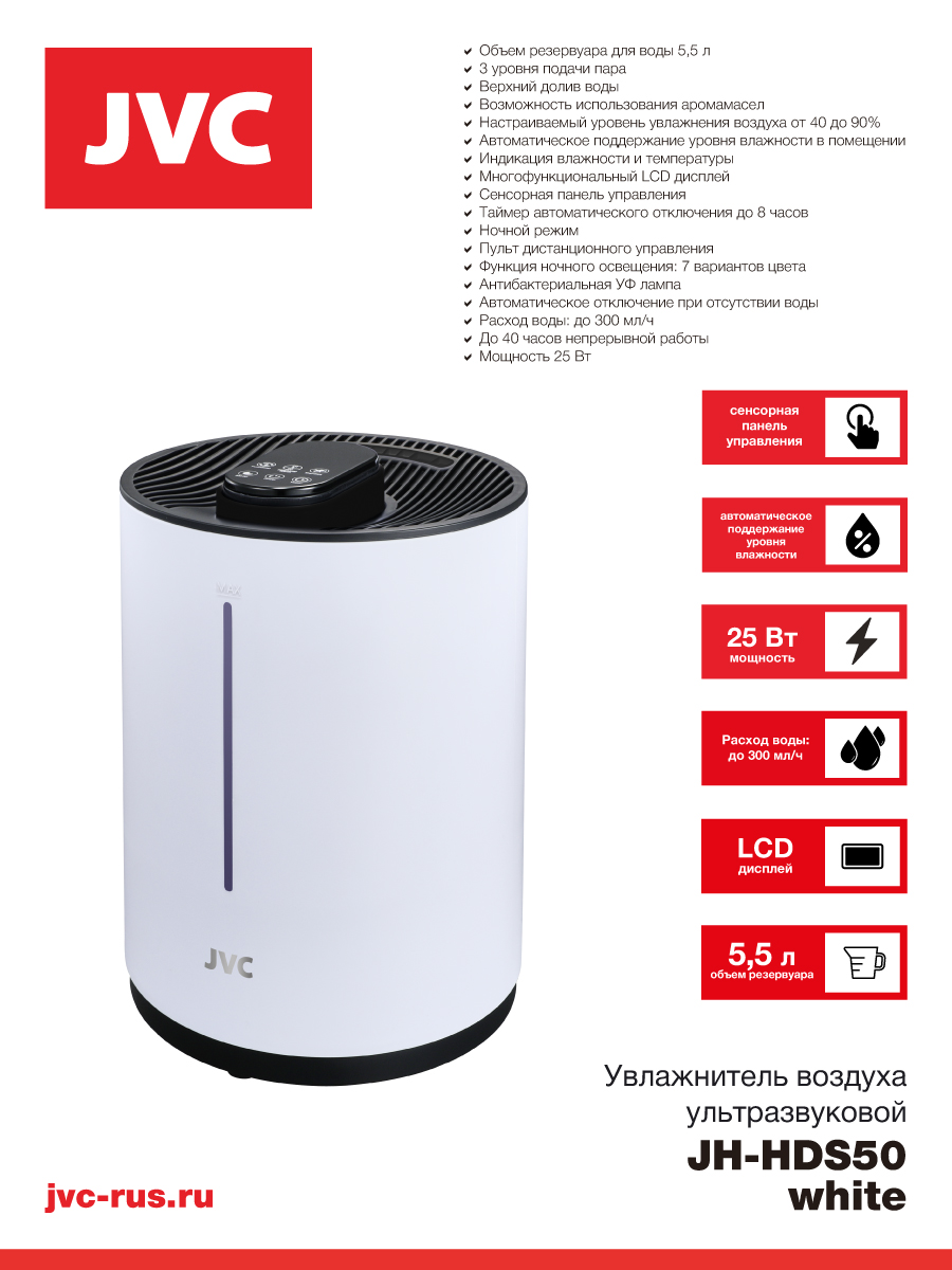 Ультразвуковой увлажнитель воздуха JVC JH-HDS50 white