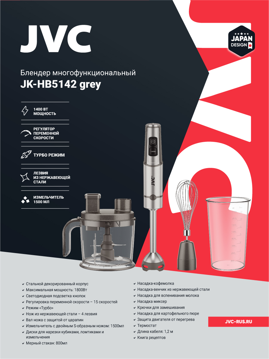 блендер, насадки, мерный стакан с крышкой, чаша для измельчения, нарезки и терки, книги рецептов, гарантийный талон, инструкция на русском языке