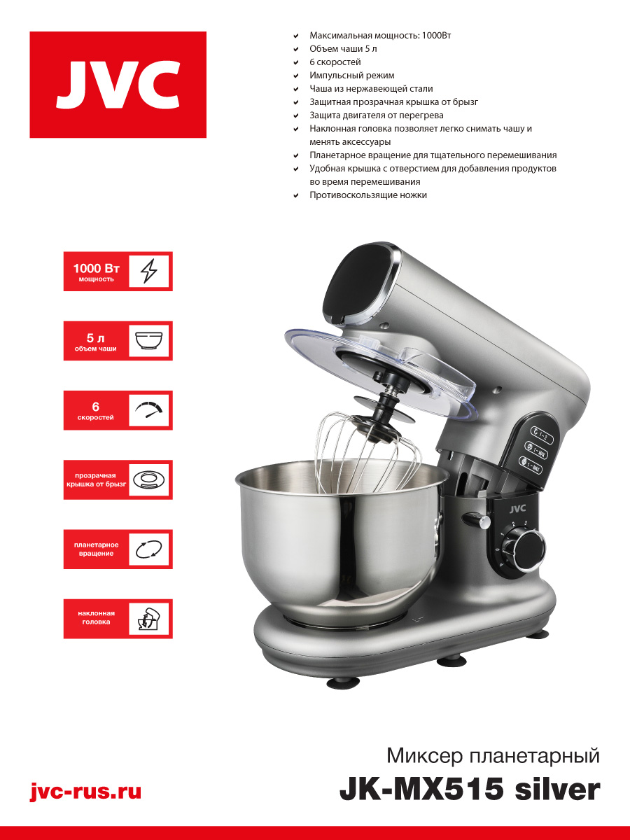 Планетарный миксер JVC JK-MX515 silver