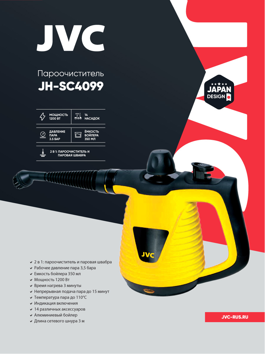 Пароочиститель 2 в 1 JVC JH-SC4099