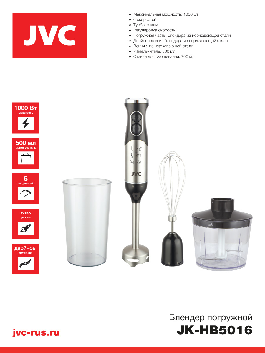 блендер, мини-измельчитель, мерный стакан, съемная насадка-блендер, съемная насадка-венчик, гарантийный талон, инструкция на русском языке