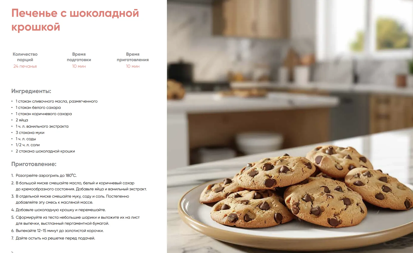 А теперь для тех, кто любит печенье, мы дарим рецепт печенья в аэрогриле с шоколадными кусочками. Вкусно? Не то слово! Расскажите в комментариях, какое печенье вы мечтаете приготовить дома?